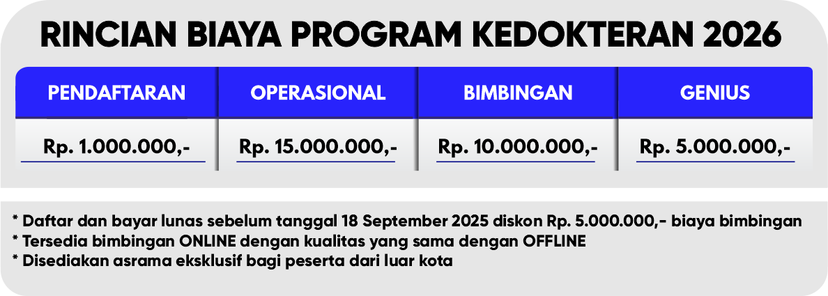 Anda tak perlu risau, bimbel kedokteran lpbb imc sudah menyiapkan semua, bergabunglah bersama kami master kedokteran LPBB INDONESIA MIND CENTER, dengan pengajar dosen, s2 ugm, pengajar terbaik di jogja, master tpa, jurara olimpiade ipa, ahli psikotes, master skolastik, ahli penalaran matematika, ahli literasi bahasa indonesia maupun inggris, dan praktisi senior, setiap tahun selalu membimbing siswa meraih kedokteran dan kini siap membimbing anda, anda akan di bekali seluruh materi ujian, juga akan di bekali prediksi soal yang akurat, cara penyelesaian soal tercepat, dan passing grade kedokteran, sehingga siswa mampu mengerjakan soal ujian dengan benar dan sesuai waktu yang di tentukan.