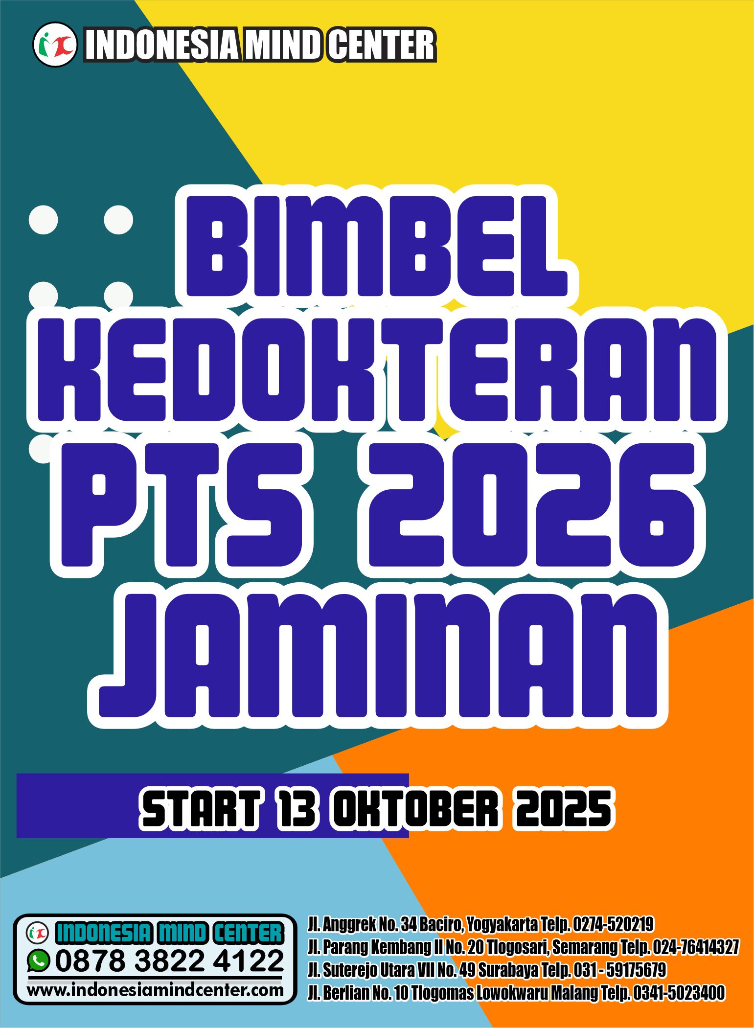 Selamat datang calon mahasiswa kedokteran di bimbel kedokteran umy lpbb imc program jaminan genius 2026, bagi siswa yang ingin meraih pend dokter umy, mari bergabung bersama LPBB INDONESIA MIND CENTER, kami sudah menyiapkan segalanya, bimbel imc sering di sebut master kedokteran, di karenakan hampir 90% siswa bimbingan dapat meraih pend dokter.
